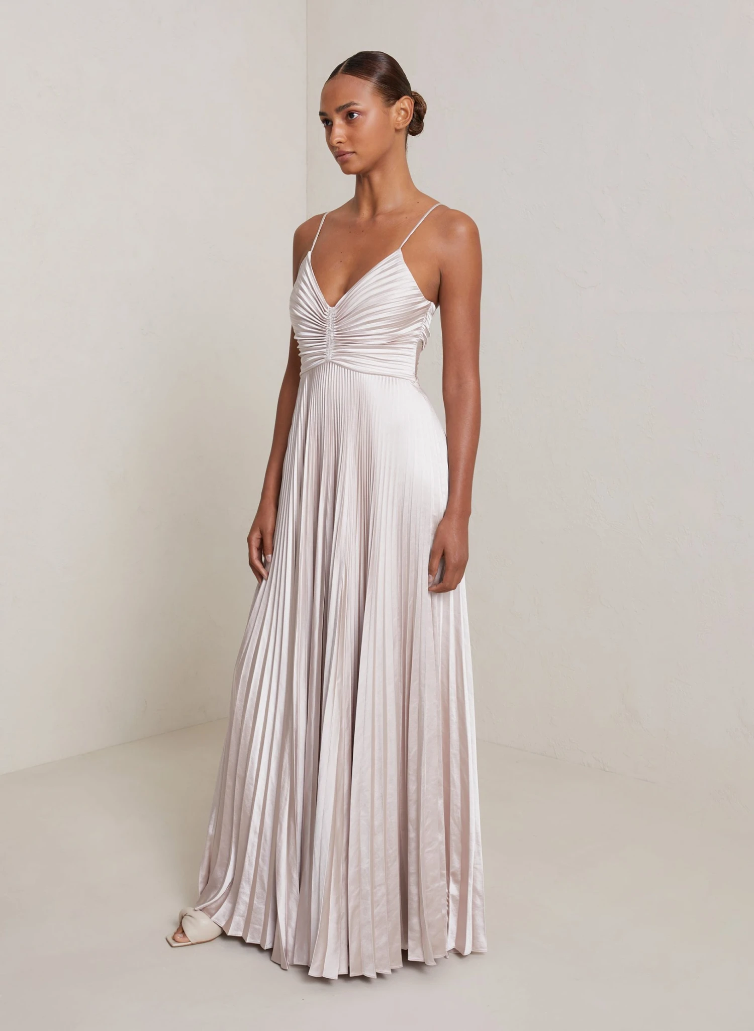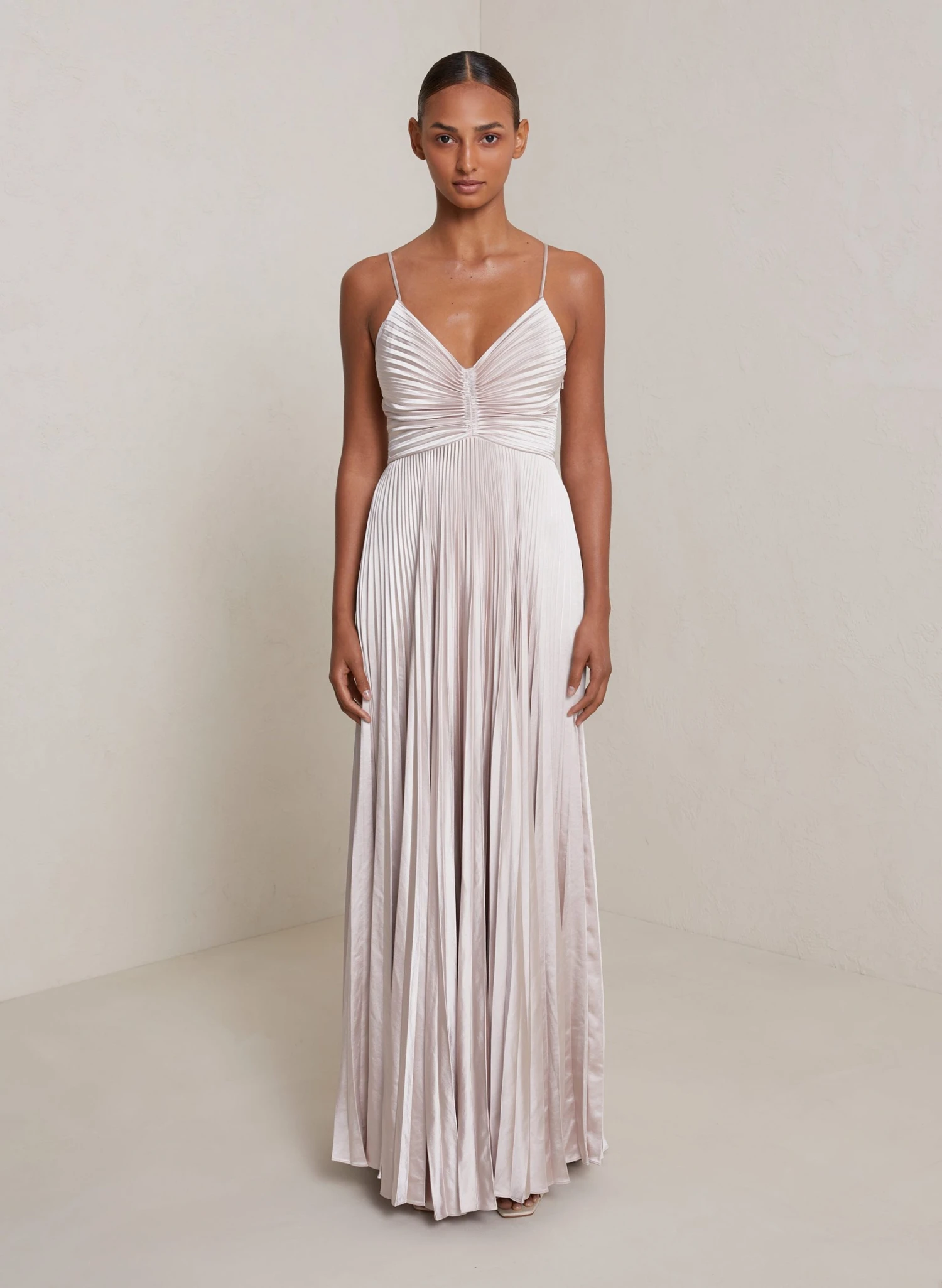 Our signature Aries dress rendered in a gleaming vintage satin, this dress stands out with a sweetheart neckline along with an allover pleated detail and a strappy lace-up back. Shop Dresses