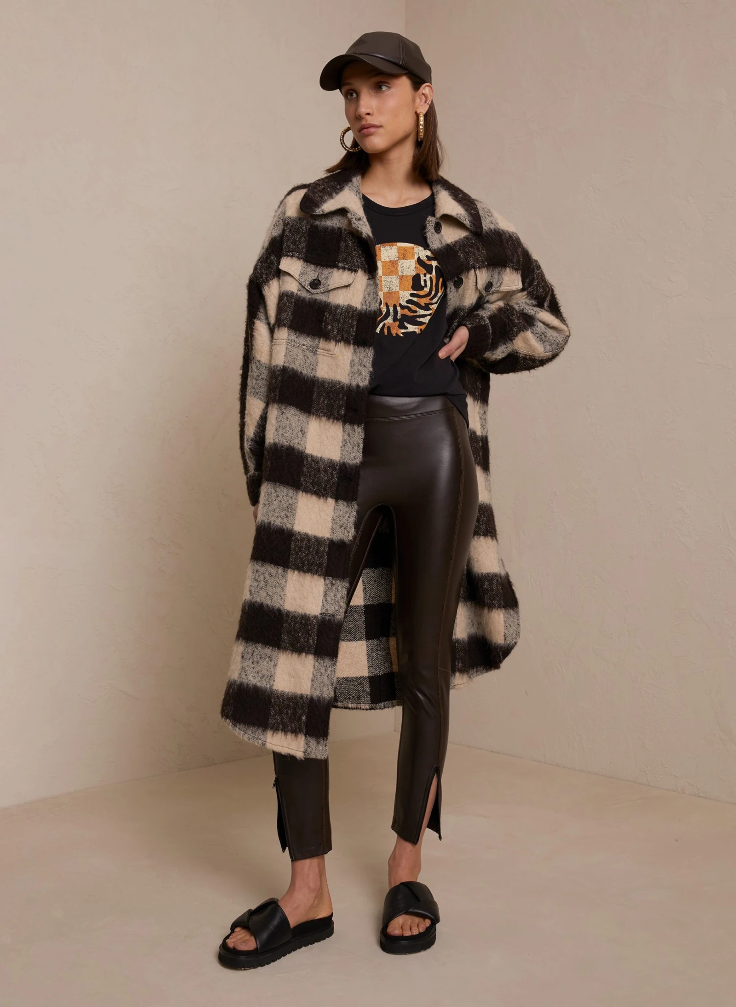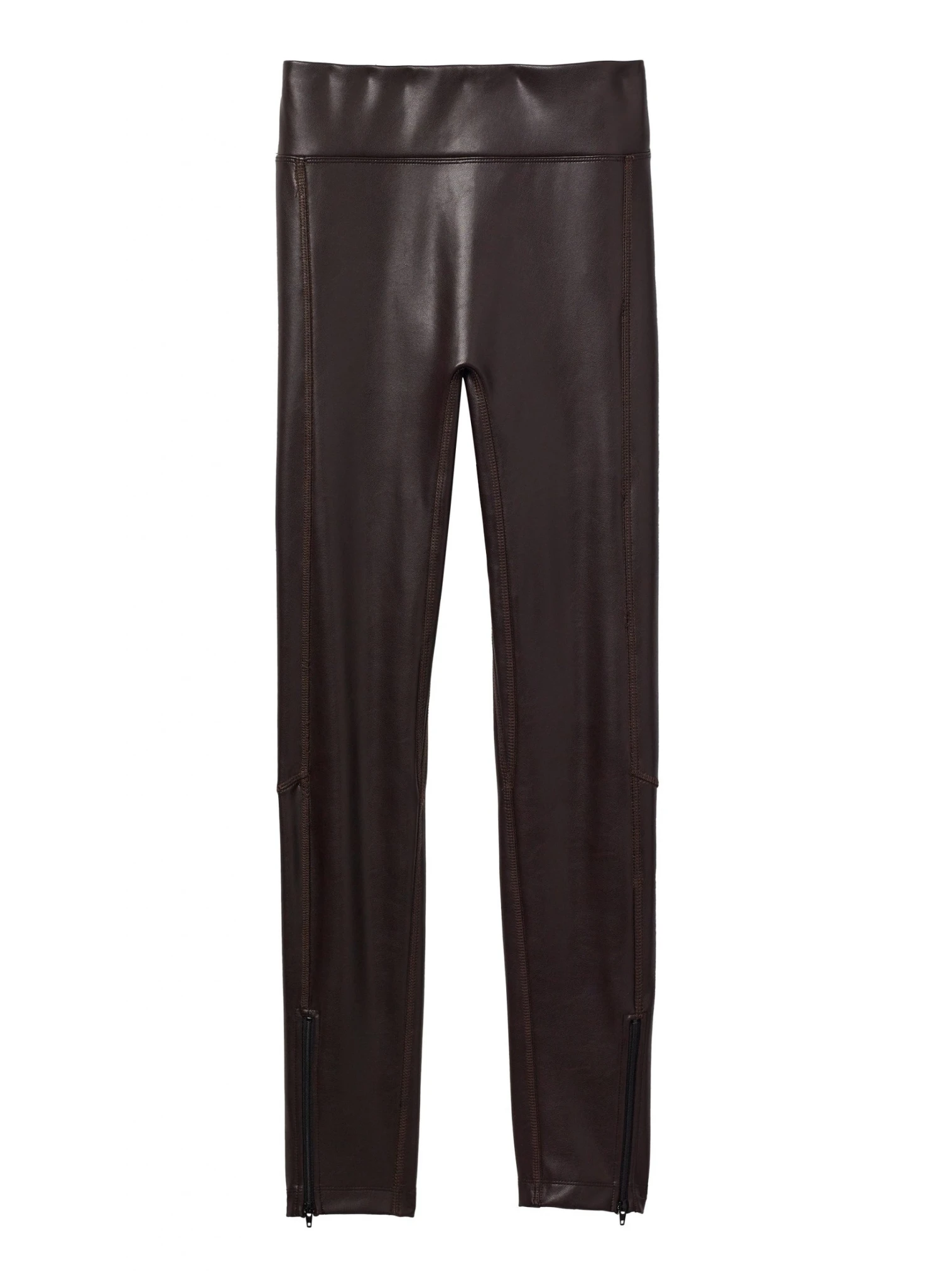 Ultra-comfortable yet effortlessly elevated, our stretch vegan leather leggings in a deep brown carob hue are an essential seasonal piece. Featuring a snug cropped fit that finishes with an adjustable ankle zip at the hem. Style runs small, we recommend ordering one size larger than your usual size.