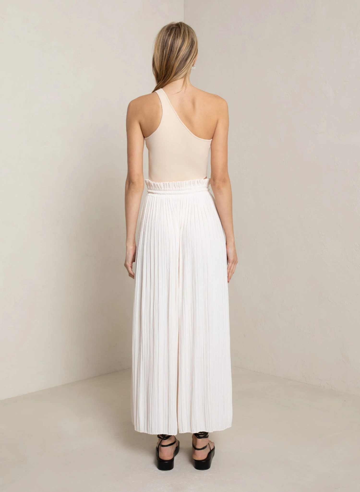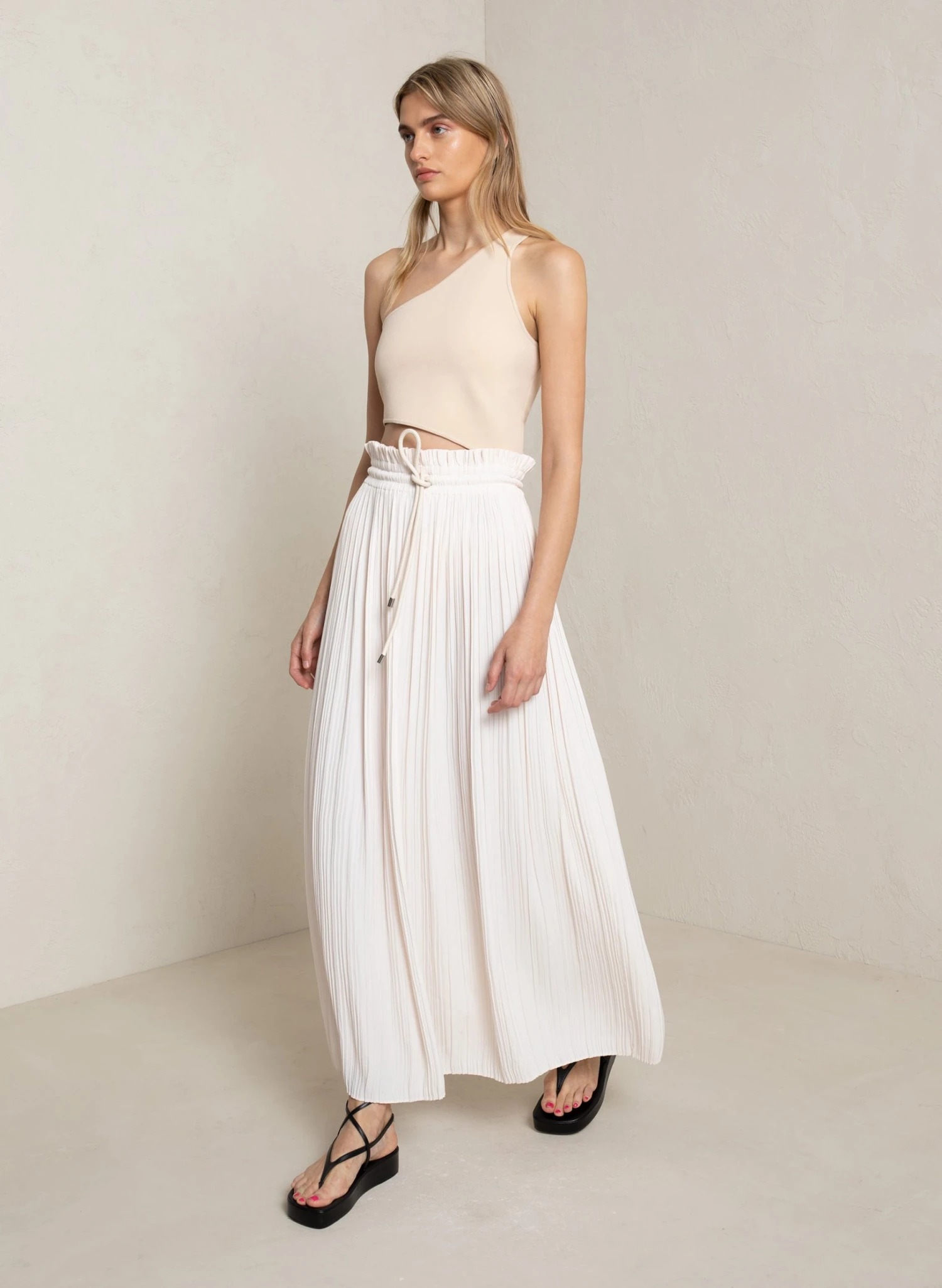 The Colby Top is crafted from soft viscose in a soft cream shade. This one-shoulder silhouette is fitted and cropped for an asymmetric shape.
