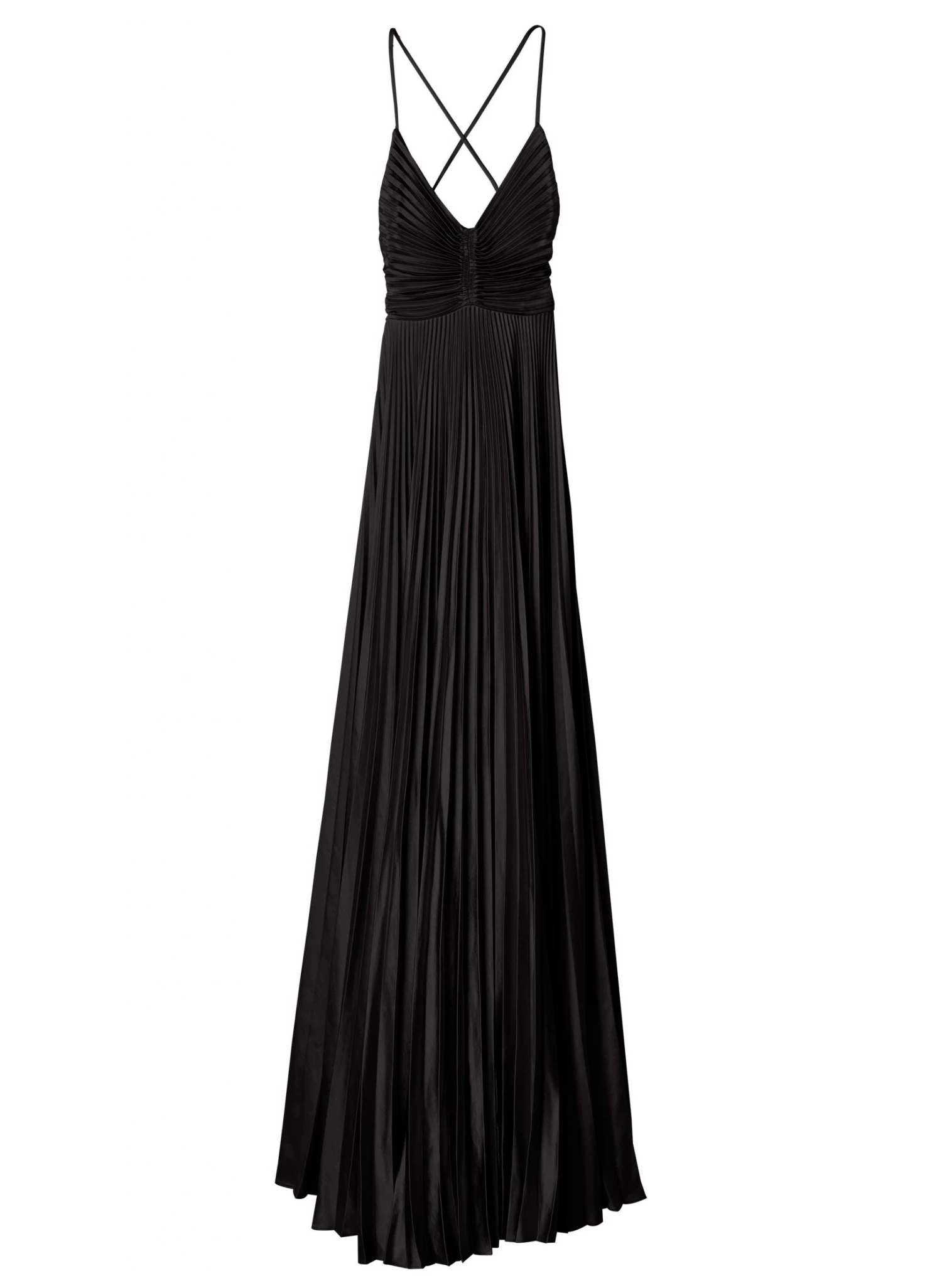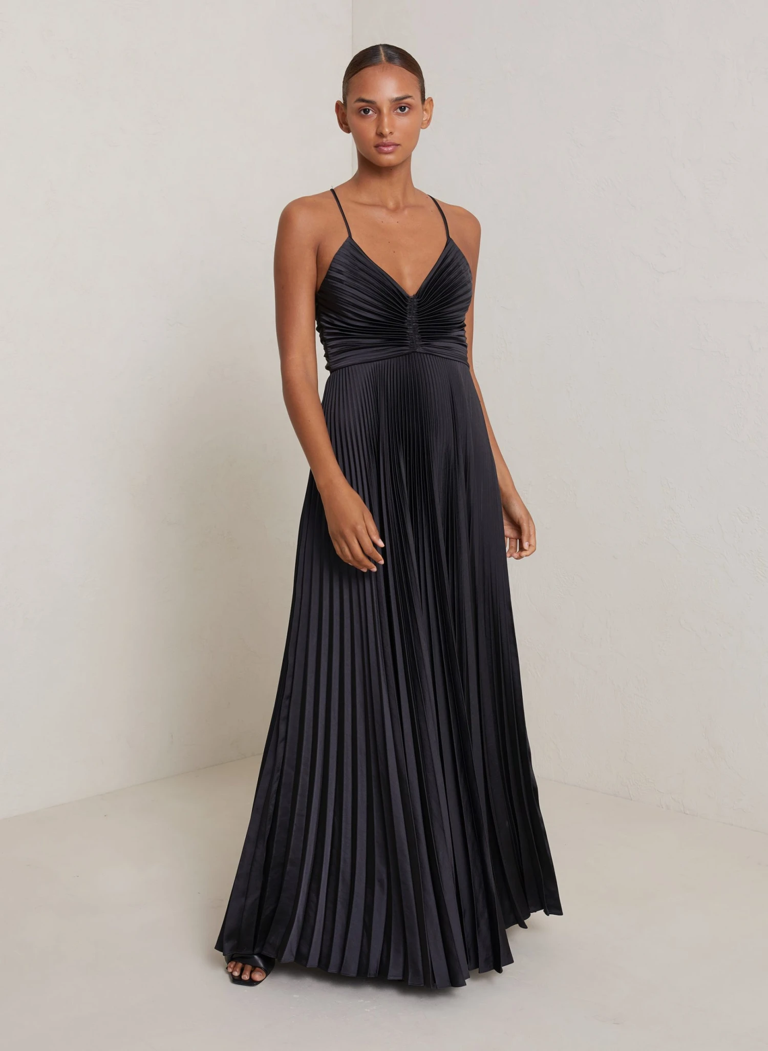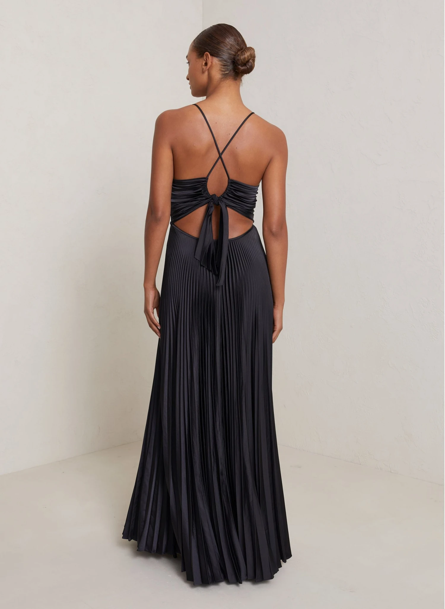 Our signature Aries dress rendered in a gleaming vintage satin, this dress stands out with a sweetheart neckline along with an allover pleated detail and a strappy lace-up back.Shop Dresses