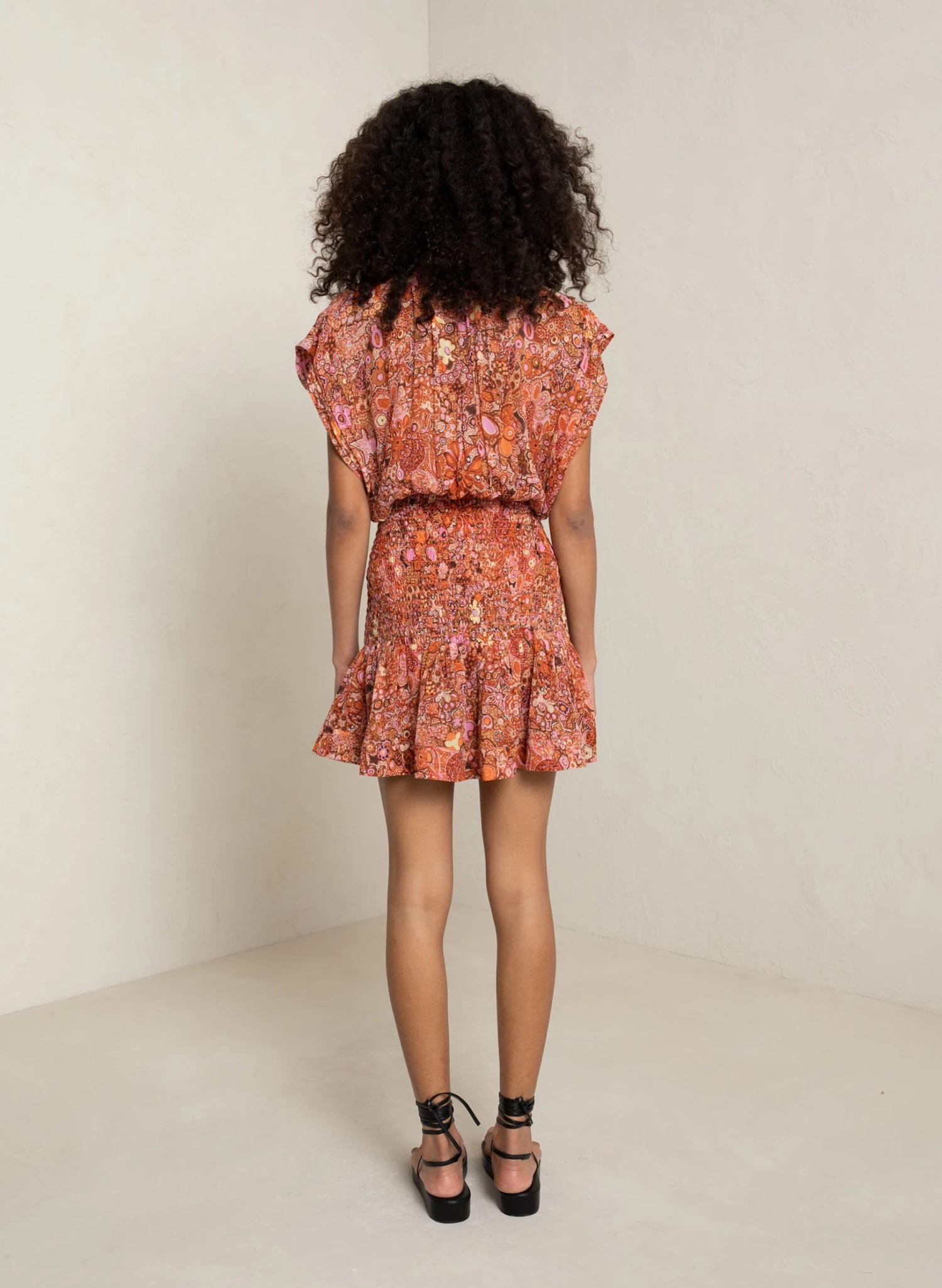 Styling Tip: Style with lace-up sandals on vacation, finishing with a woven tote bag and layered jewelry.