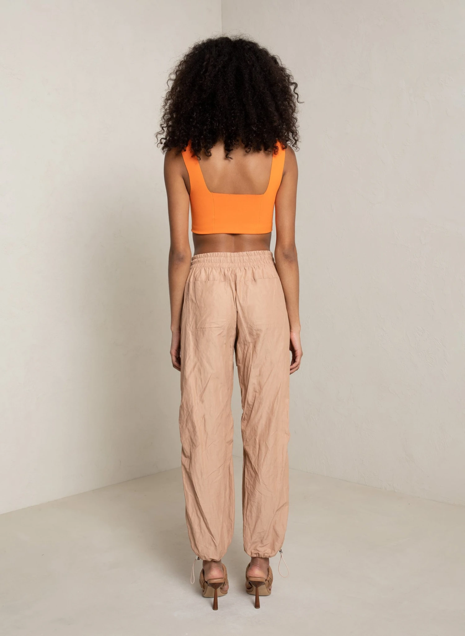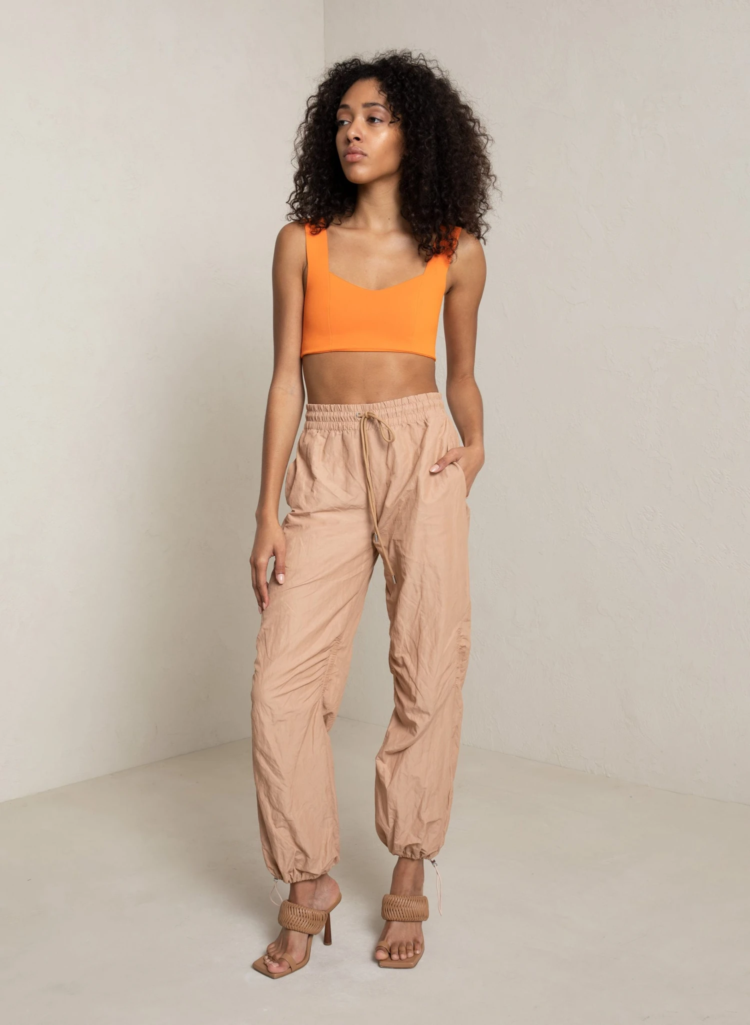 The Jordana Bra is crafted from soft viscose in a bright orange hue. The cropped silhouette, designed to be fitted, features wide straps and a sweetheart neckline.