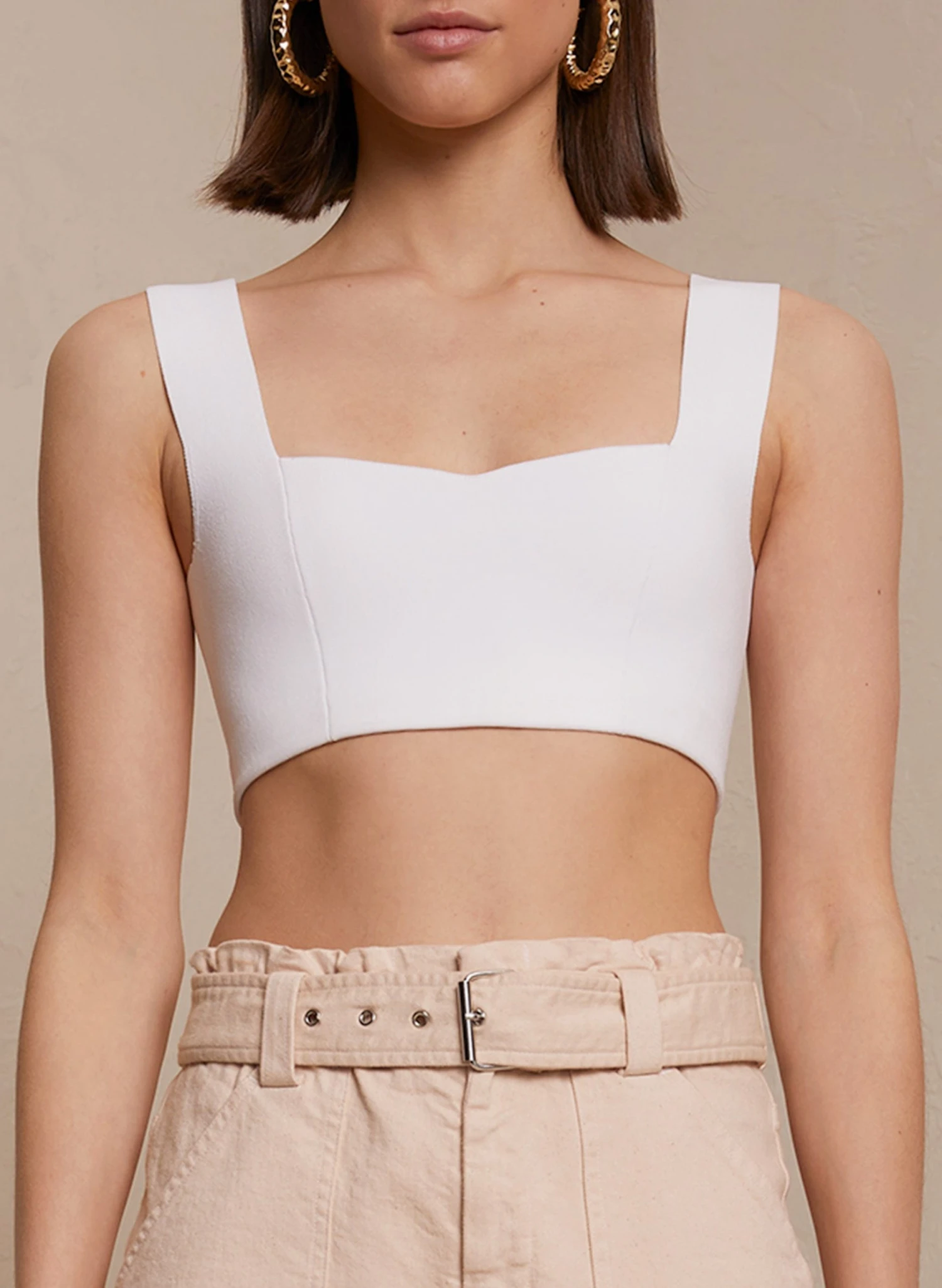 Rendered in our signature compact knit yarn and featuring a subtle sweetheart neckline and thick shoulder straps. Shop Knitwear